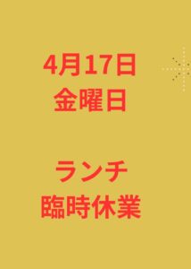 ・4月17日(金)ランチタイムはお休みとなります。