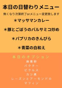 ※営業時間は、10:30~15:00 ただしなくなり次第終了またはメニューを変更いたします。