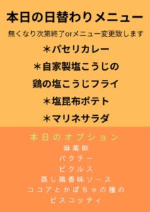 ※営業時間は、10:30~15:00 ただしなくなり次第終了またはメニューを変更いたします。
