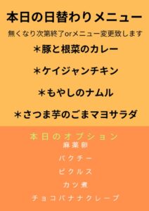 ※営業時間は、10:30~15:00 ただしなくなり次第終了またはメニューを変更いたします。