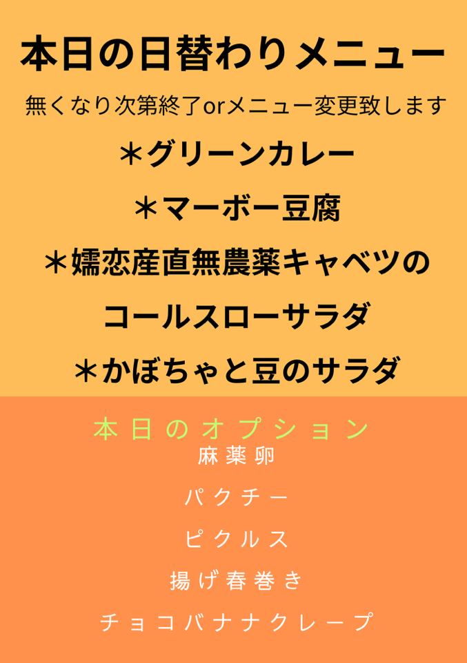 ※営業時間は、10:30~15:00 ただしなくなり次第終了またはメニューを変更いたします。