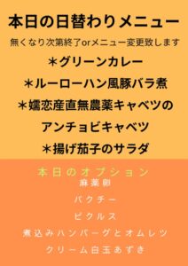 ※営業時間は、10:30~15:00 ただしなくなり次第終了またはメニューを変更いたします。