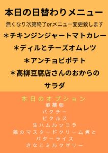 ※営業時間は、10:30~15:00 ただしなくなり次第終了またはメニューを変更いたします。