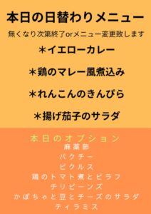 ※営業時間は、10:30~15:00 ただしなくなり次第終了またはメニューを変更いたします。