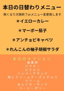 ※営業時間は、10:30~15:00 ただしなくなり次第終了またはメニューを変更いたします。