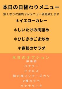 ※営業時間は、10:30~15:00 ただしなくなり次第終了またはメニューを変更いたします。