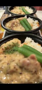 鶏のクリーム煮とピラフ作っています♬これからアップルパイも焼いていきます!たっぷり手作りカスタード入りです~皆さまのお越しをお待ちしております♬