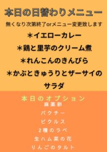 ※営業時間は、10:30~15:00 ただしなくなり次第終了またはメニューを変更いたします。