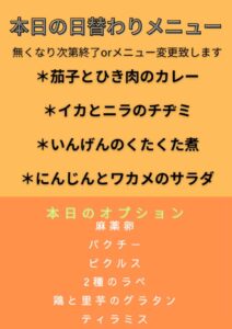 ※営業時間は、10:30~15:00 ただしなくなり次第終了またはメニューを変更いたします。