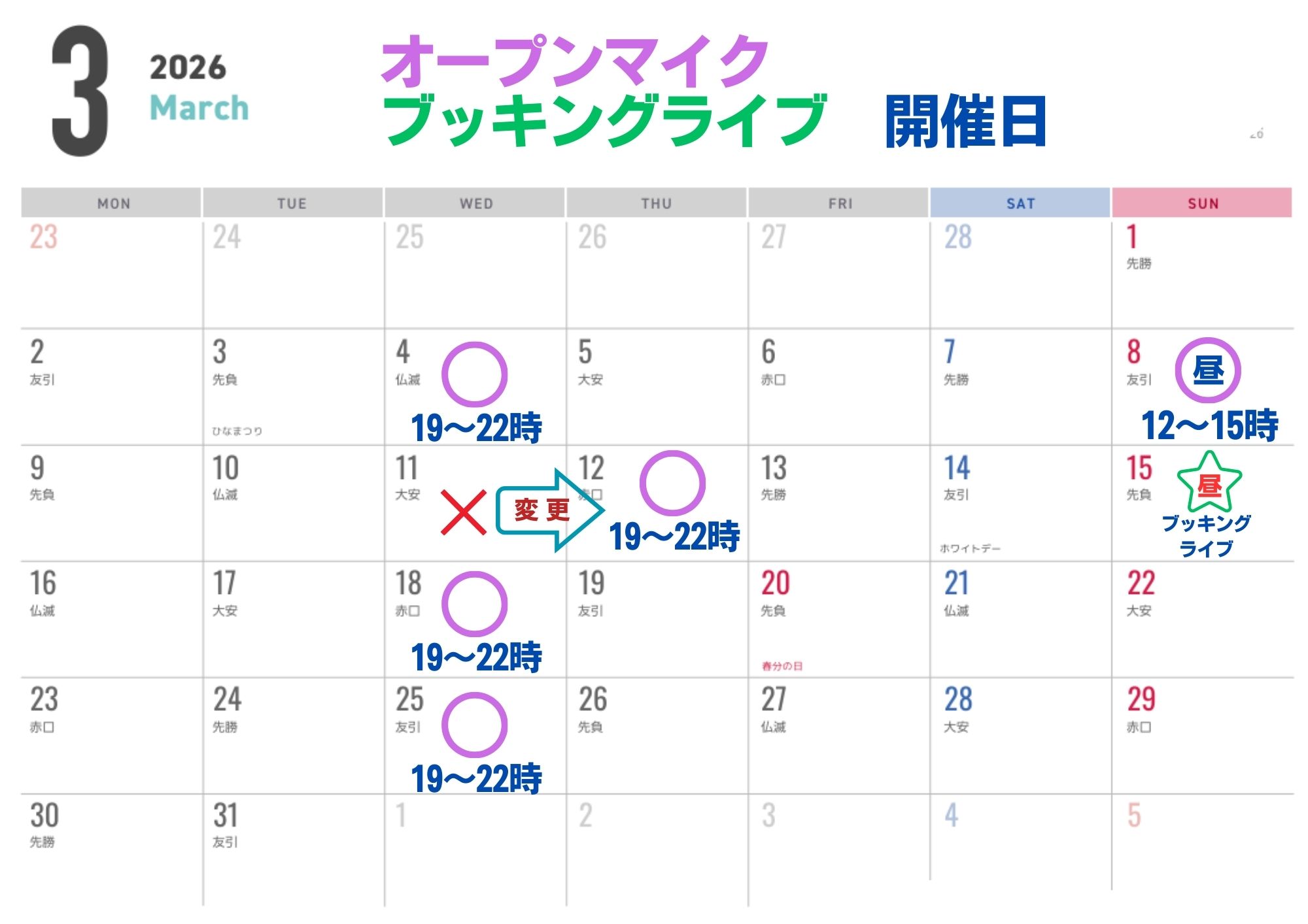 ・3月15日(日)昼開催 出演者応募受付中!