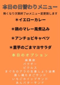 ※営業時間は、10:30~15:00 ただしなくなり次第終了またはメニューを変更いたします。