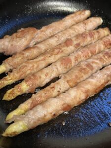 サロンゴはお馴染みお肉で巻いて焼きました!皆さまのお越しをお待ちしております♬