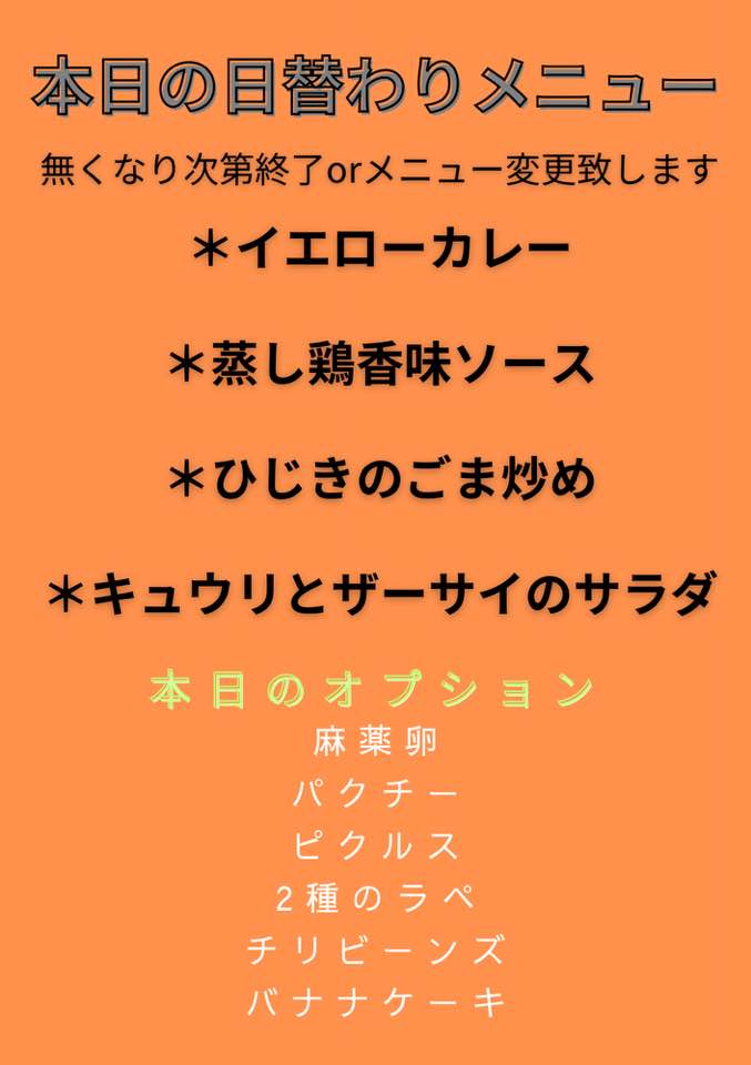 ※営業時間は、10:30~15:00 ただしなくなり次第終了またはメニューを変更いたします。