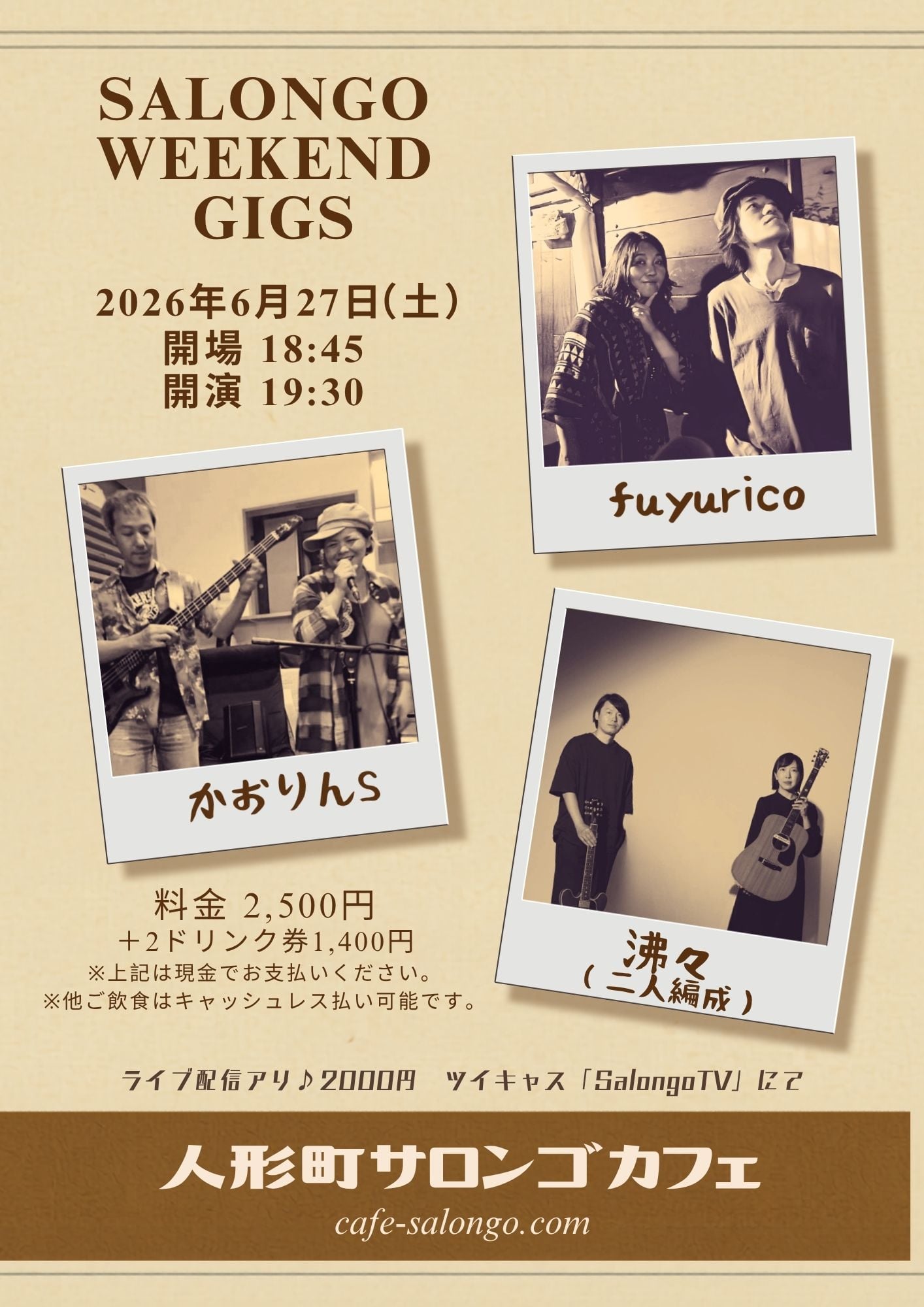 ・ミュージックチャージのお支払いは現金でお願いします。